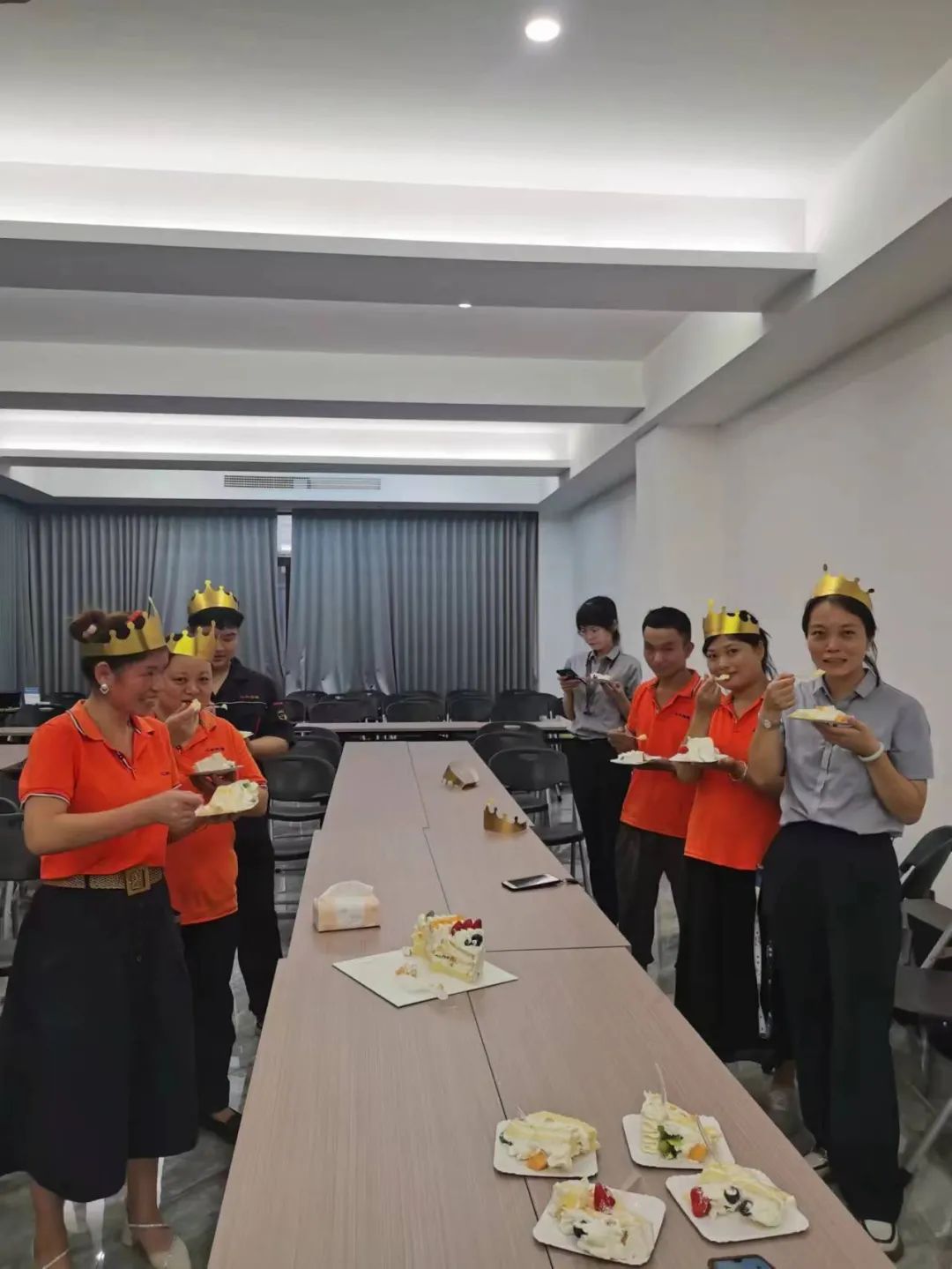 公司為過生日的伙伴們準備了蛋糕。來,點上蠟燭,我們閉上眼,一起來許一個愿望吧!