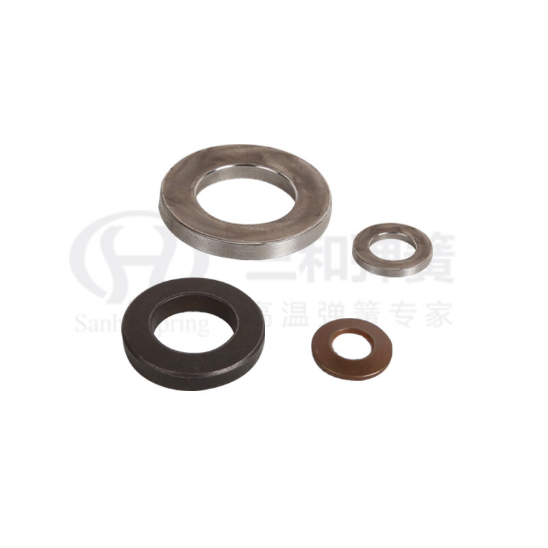 碟形彈簧又名貝勒維爾彈簧墊圈,是法國人貝勒維爾發(fā)明的,其成圓錐形盤狀,既可以單個使用,又可以多個串聯(lián)或并聯(lián)使用,在上內(nèi)緣和下外緣處承受沿軸向作用的靜態(tài)或動態(tài)載荷,被壓縮后產(chǎn)生變形,直至被壓平,以儲存能量形式作為活載荷。在需要時自動轉(zhuǎn)化為密封所需要的附加壓縮載荷,來降低墊片、填料使用中對上緊的持續(xù)要求。